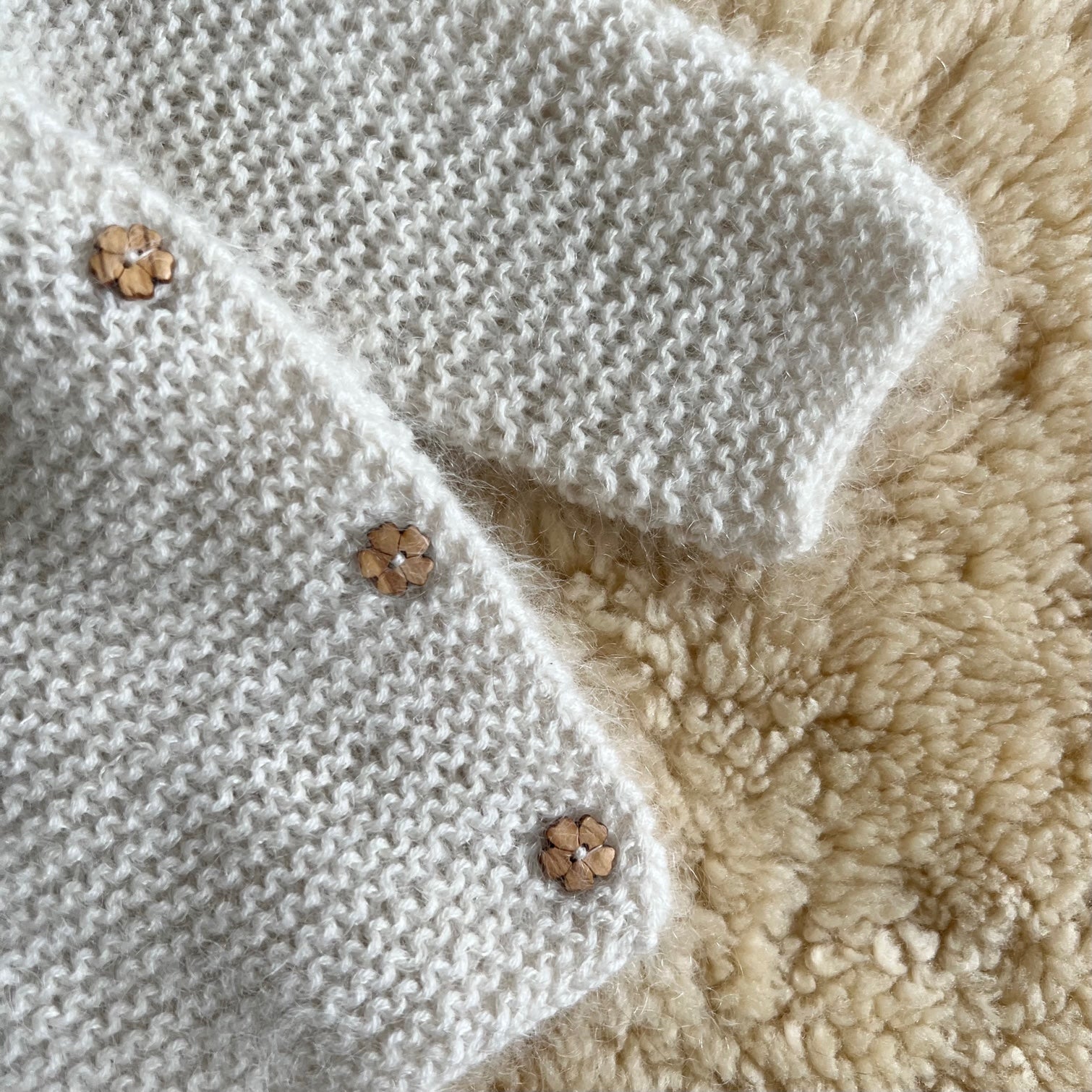 Garnforslag: Merino/Knitting for Olive sammen med silk mohair følgetråd (ca 220m/25g)